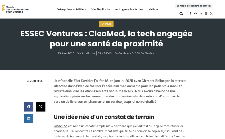 Depuis sa création, CleoMed est accompagné par des acteurs engagés de l’innovation et de la santé.